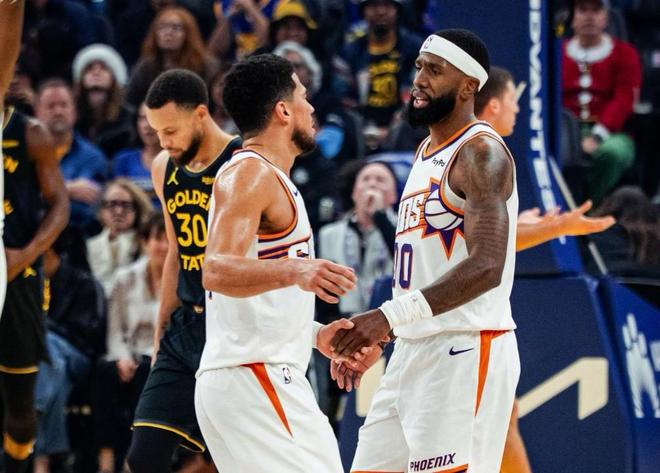 另一邊的太陽隊,本場比賽之前,15勝12負(fù)排名西部第7;即便太陽休賽期送走了杜蘭特和比爾,但他們?nèi)匀痪邆錄_擊季后賽的能力。