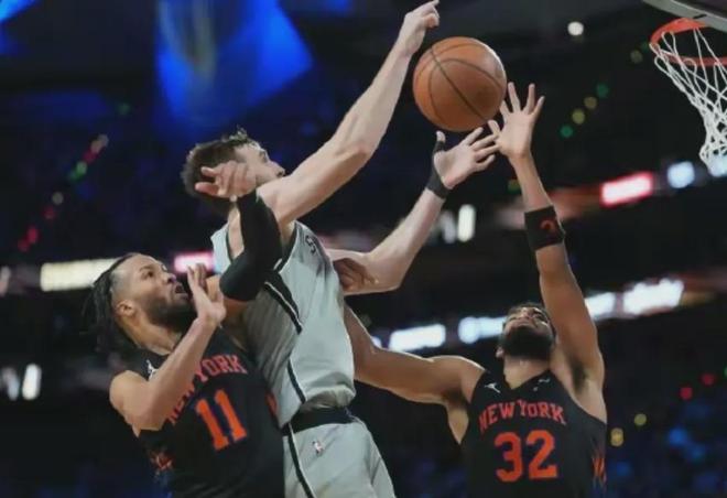 科內(nèi)特是個落選秀,2017-18賽季在尼克斯開啟NBA生涯,輾轉(zhuǎn)尼克斯、公牛、騎士、雄鹿和凱爾特人,終于在30歲這年到馬刺成了首發(fā),讓文班亞馬給他打替補(bǔ)。